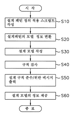 1적어도 두 개 이상의 객체들 사이의 연관성을 정의한 다수 개의 설계 패턴들 중에서 어느 하나를 응용하여 객체지향 프로그래밍 시스템의 설계 모델로 작성하는 장치에 있어서,상기 설계 패턴의 모델 변환 연산자가 포함된 설계 패턴 정의 및 적용 데이터를 입력받는 설계 패턴 입력부;상기 설계 패턴 입력부에서 입력된 상기 설계 패턴 정의 및 적용 데이터에 응답하여 기설정된 모델 변환 명령 리스트 중에서 어느 하나를 선택하고 상기 선택된 모델 변환 명령에 따라 설계 패턴의 모델 정보를 변환하는 모델 변환부;상기 모델 변환부에서 전달된 모델 정보에 따라 상기 객체 지향 프로그래밍 시스템에 적용되는 설계 패턴을 갖는 설계 모델을 작성하는 설계 모델 작성부;상기 설계 패턴 입력부에서 전달된 설계 패턴 정의 및 적용 데이터에 응답하여 상기 설계 패턴의 제한 조건에 대한 규칙을 적용하고 상기 설계 모델 작성부에서 작성된 설계 모델에서 상기 규칙을 위반하고 있는지를 검사하는 규칙 기반 시스템;상기 설계 모델 작성부의 설계 모델 정보를 상기 규칙 기반 시스템에 전달하여 규칙 검사를 요청하고 상기 규칙 기반 시스템에서 검사된 결과를 전달받는 규칙 검사부; 및상기 규칙 검사부의 검사 결과에 따른 설계 패턴의 규칙 준수/위반 메시지를 디스플레이하는 설계 정보 메시지 출력부를 구비한 것을 특징으로 하는 객체지향 프로그래밍 시스템의 설계 모델 적용장치.
