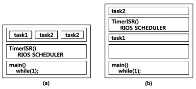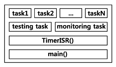 발명의 실시예에 따른 RIOS 기반 임베디드 시스템 소프트웨어 테스트 방법은 어플리케이션의 테스팅과 모니터링을 위한 테스팅 및 모니터링 태스크를 생성하는 단계; 상기 어플리케이션의 실행을 위한 어플리케이션 태스크를 생성하고 수행하는 단계; 상기 어플리케이션 태스크가 모두 수행되었는지를 판단하는 단계; 및 상기 어플리케이션 태스크가 모두 수행된 경우 상기 테스팅 및 모니터링 태스크를 수행하는 단계를 포함한다.