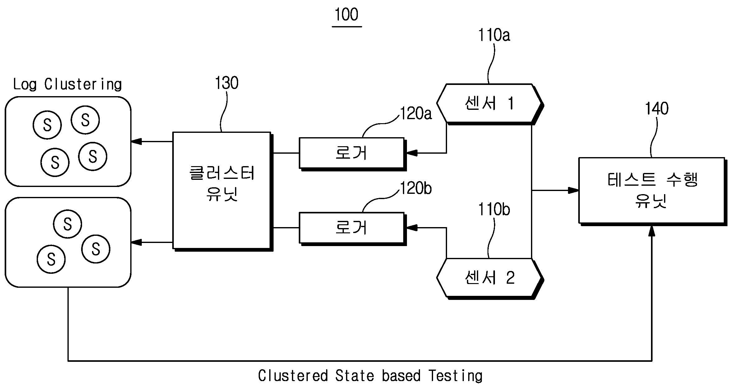| 1 | 외부 환경 요소를 센싱하는 적어도 둘 이상의 센서; 상기 센서마다 센싱한 외부 환경 요소의 데이터를 로그 데이터로 기록하는 로거(Logger); 상기 로그 데이터를 클러스터링 하여 클러스터로 분류하고 분류된 클러스터를 대상으로 테스트 시나리오를 구성하고 클러스터 유닛; 및 상기 클러스터 유닛에 의해 구성된 모든 테스트 시나리오에 대해 테스트를 수행하는 테스트 수행 유닛을 포함하여 구성되는 것을 특징으로 하는, 로그 모니터링 기반의 임베디드 시스템 테스트 장치. |