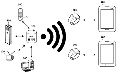 | 3 | 제1항에 있어서, 상기 제어부는, 상기 웨어러블 디바이스로부터 수신된 상기 사물 인터넷 디바이스 제어 명령을 해당 사물 인터넷 디바이스에 전달하도록 제어하는 것을 특징으로 하는 사물 인터넷 중계기. |