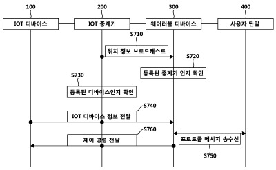 | 4 | 제3항에 있어서, 상기 사물 인터넷 디바이스 제어 명령은, 상기 웨어러블 디바이스에 연결된 사용자 단말로부터 수신된 제어 명령인 것을 특징으로 하는 사물 인터넷 중계기. |